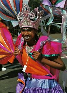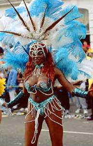 These celebrations of freedom provided the only opportunity for black people to express their feelings about their slave masters and they quickly developed the art of costume making, creating fantastic ensembles which satirised their situation as Africans, transported to the Caribbean top become slaves. In Trinidad the tradition continued, going from strength to strength, as people from all over the island began to take part and associate themselves with Carnival, The skills of costume making, steel drumming and calypso became what is today, a huge festival of arts and culture, of which Trinidadian's everywhere are justifiably proud, drawing on all aspects of their cultural heritage from Africa and Europe |